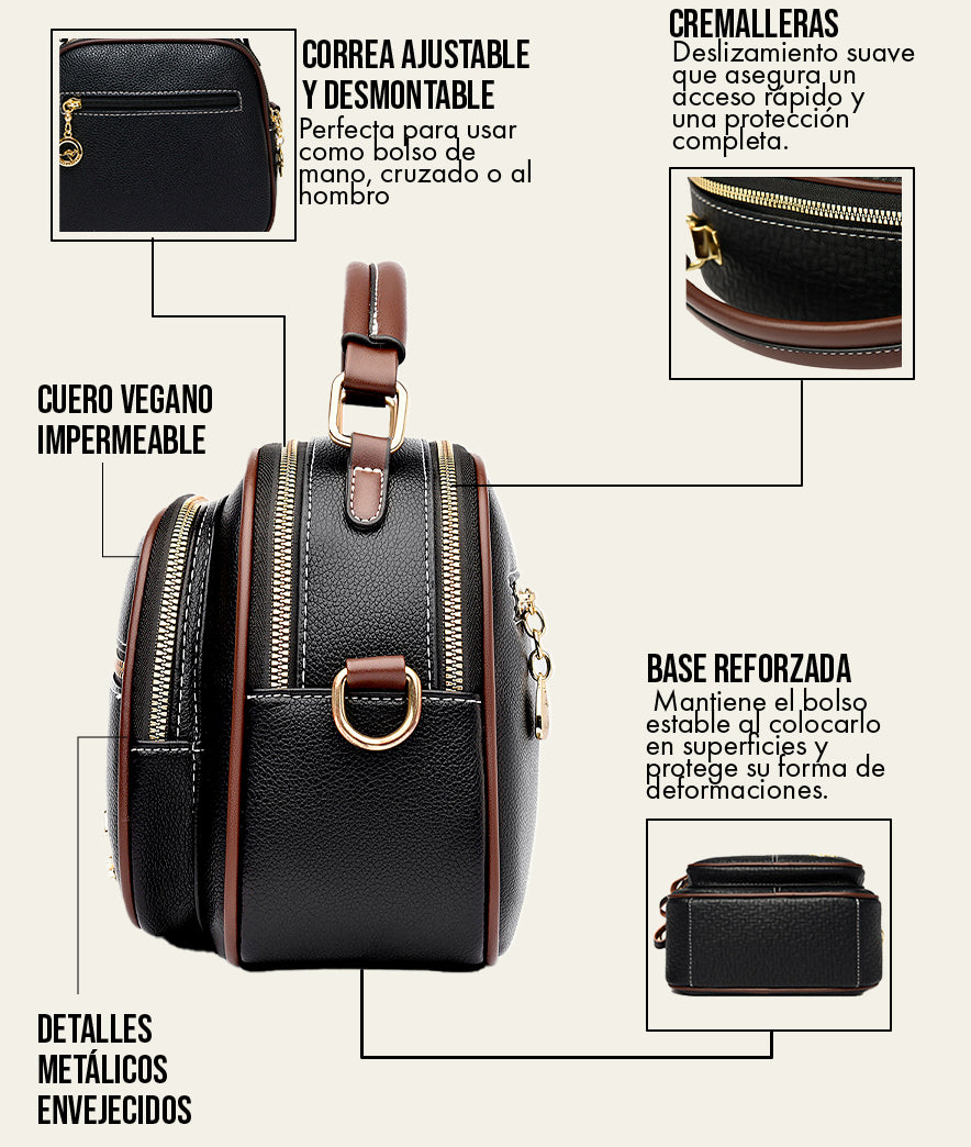 Los dos compartimentos con cierre metálico fuerte te dan la confianza de que tus objetos de valor están doblemente protegidos, ideal para el ajetreo diario de las ciudades grandes.