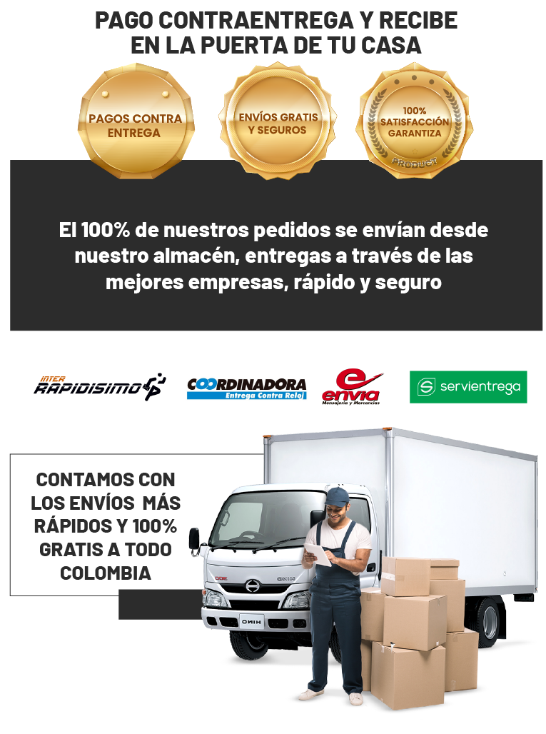 Tenemos PAGO CONTRA ENTREGA en todo el país, ¡así que podrás pagar tu pedido en tu dirección cuando lo recibas!