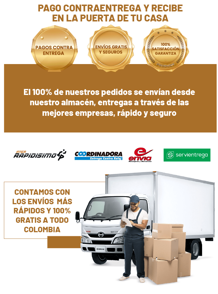 Tenemos PAGO CONTRA ENTREGA en todo el país, ¡así que podrás pagar tu pedido en tu dirección cuando lo recibas!