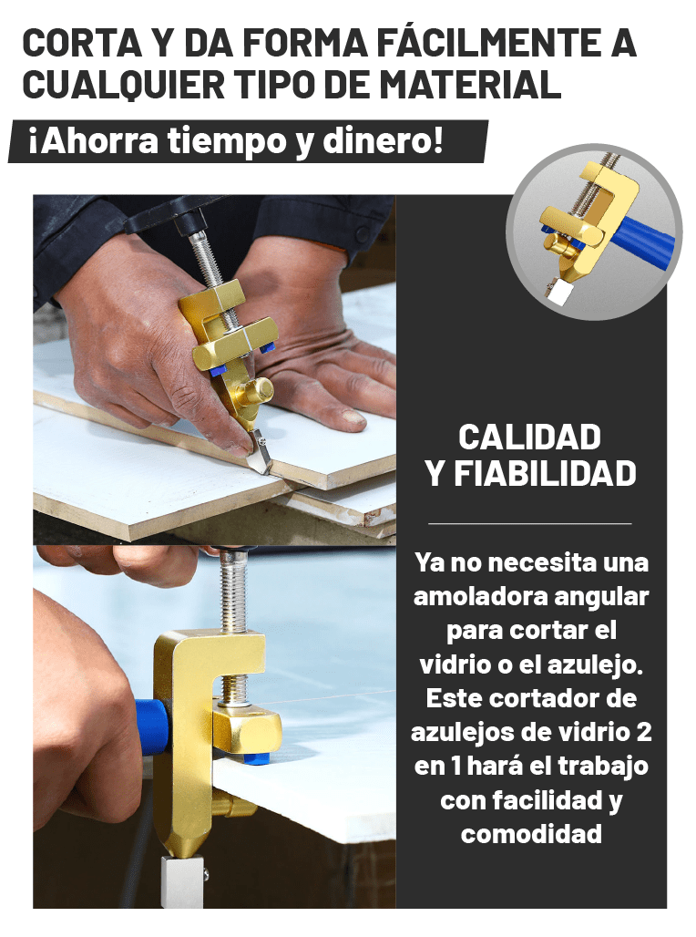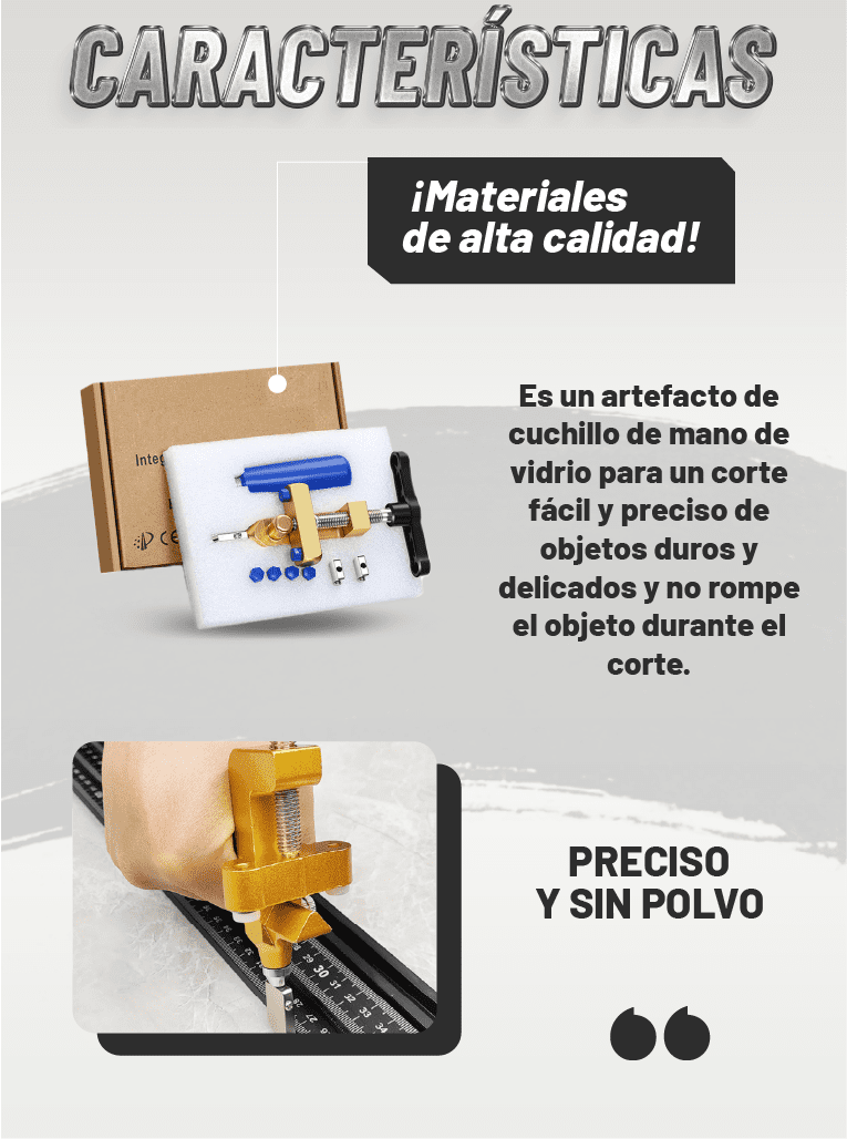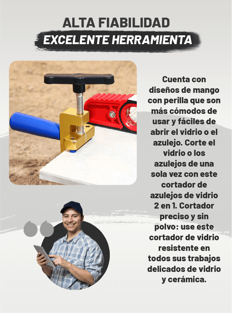 Fácil de usar: no requiere experiencia ni fuerza excesiva Adaptabilidad a diferentes tipos y grosores de cerámica. Larga vida útil gracias a su construcción metálica reforzada.