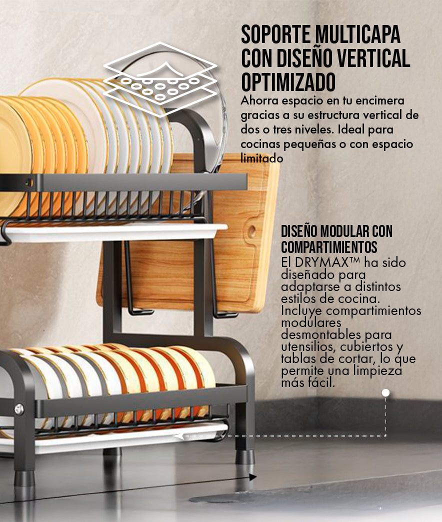 El escurridor DryMax no solo organiza, transforma visualmente tu cocina. Su diseño moderno y estilizado hace que el área del lavaplatos se vea limpia, profesional y con carácter. ¡Tu cocina se verá como salida de una revista!