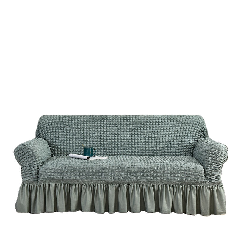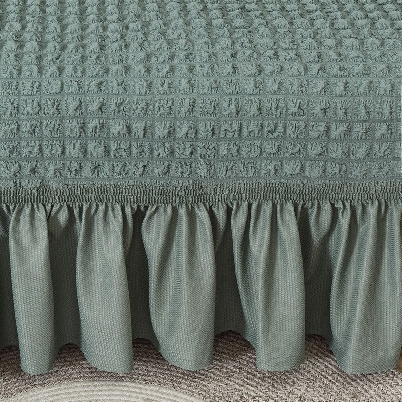 A diferencia de otras fundas básicas que solo cubren, nuestra Funda para Sofá con Bolero decora, protege y transforma. Su textura acolchada y su acabado con volante inferior le dan un look de catálogo a cualquier sala.