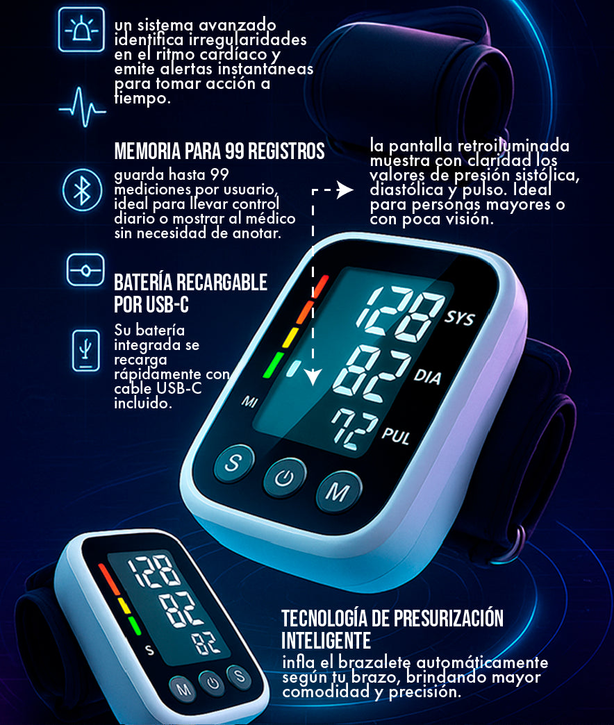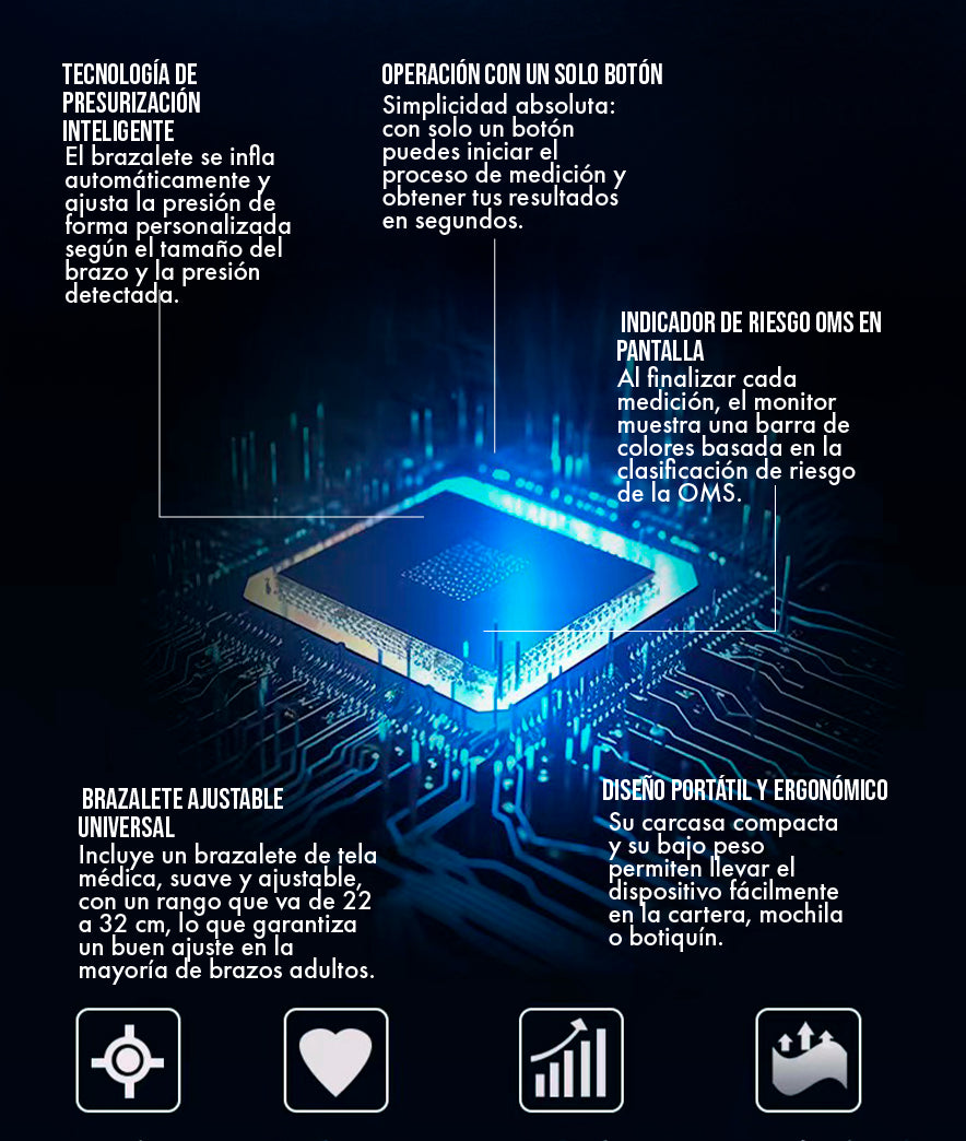 compacto, confiable y profesional. llévalo donde necesites. con lecturas confiables, sabrás exactamente cómo se comporta tu presión cada día.