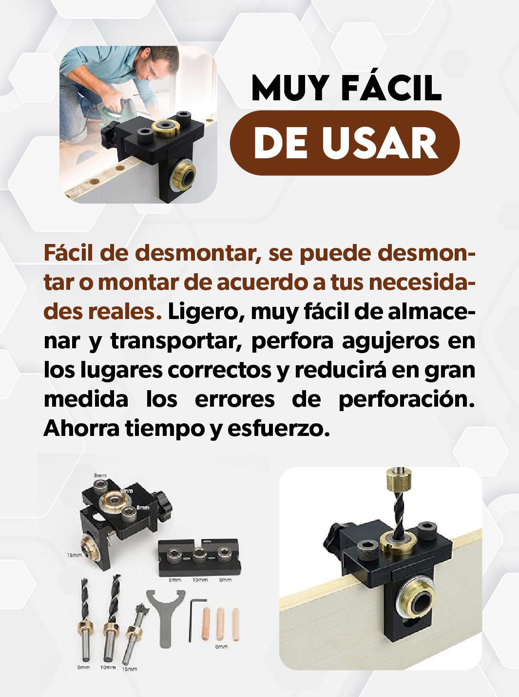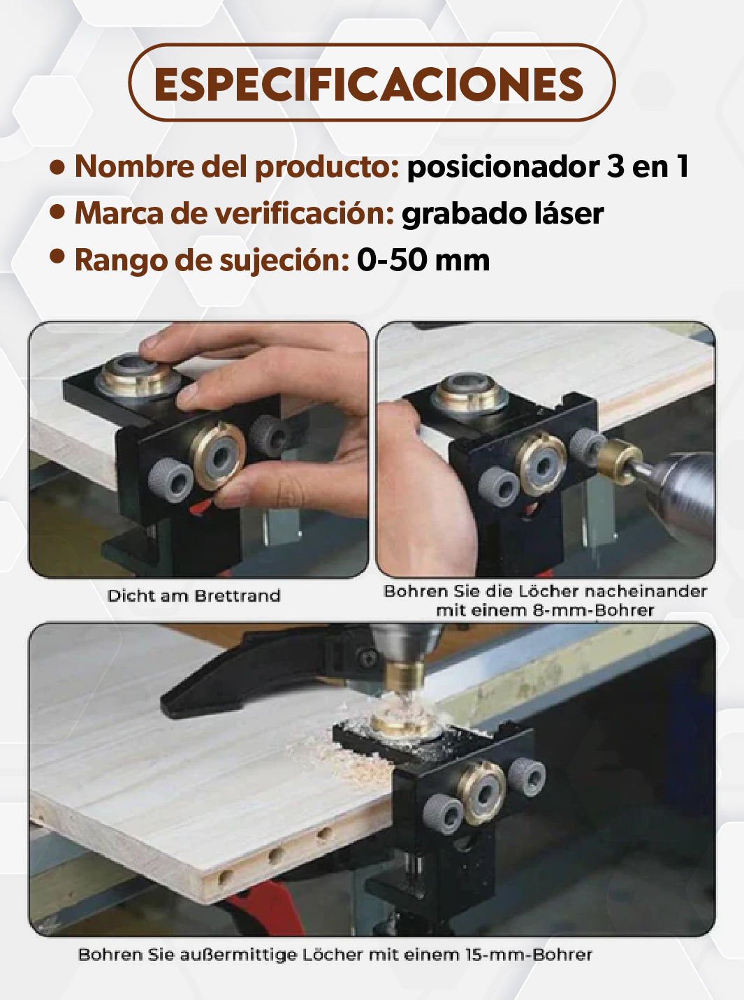 Este posicionador 3 en 1 no es una herramienta común. Es una solución de precisión diseñada para quienes toman en serio su trabajo. Su diseño profesional garantiza orificios rectos, exactos y centrados sin necesidad de herramientas costosas ni equipos industriales.
