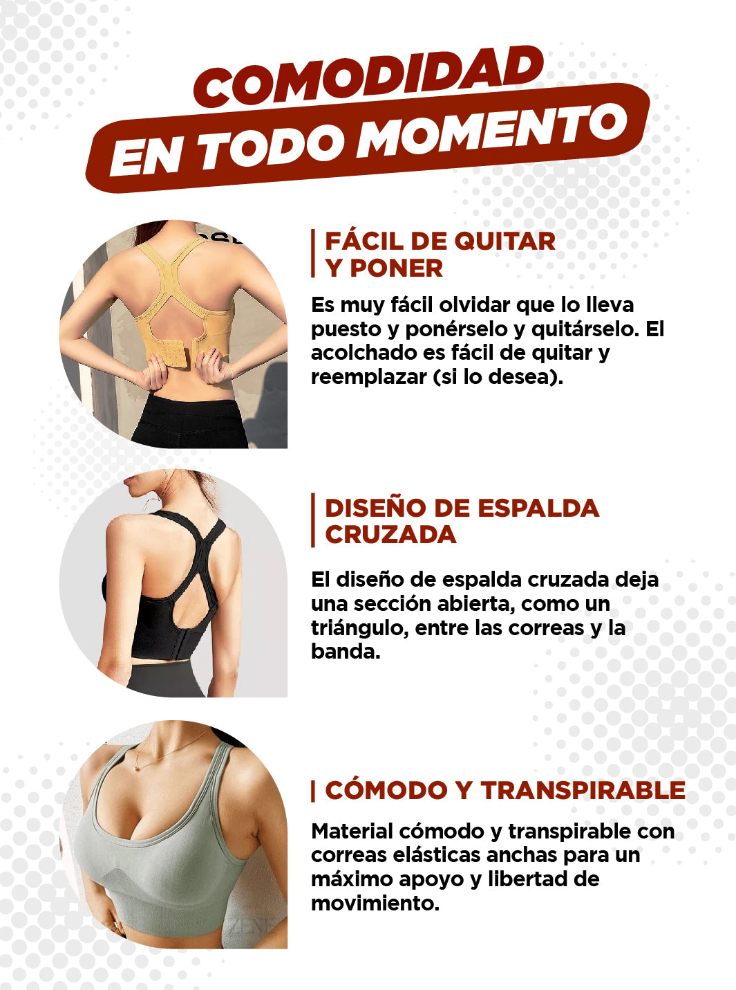 Perfecto para mujeres activas que buscan soporte sin incomodidad. Siéntete bien contigo misma con un sujetador que resalta lo mejor de ti. Ideal para evitar dolores de espalda o presión en el busto.Un solo sujetador que reemplaza varios.